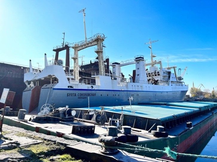 Судно находилось на территории предприятия «Наваль Логистик», бывшего ЧСЗ. Недавно Минюст помешал попыткам Вадима Новинского скрыть свои активы от санкций, в том числе и компанию «Наваль Логистик».