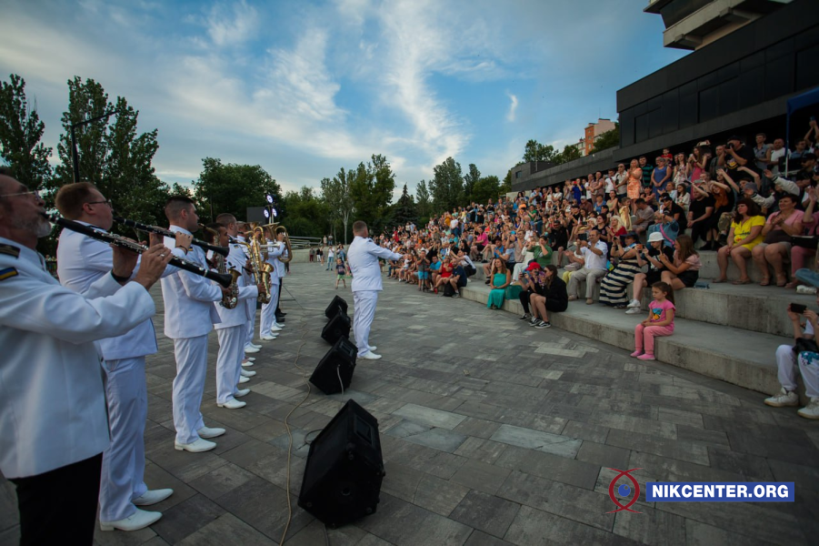 Вечером 2 июля на 8-м причале собрались сотни николаевцев и гостей города. Здесь отметили День военно-морских сил ВСУ выступлением военного оркестра.