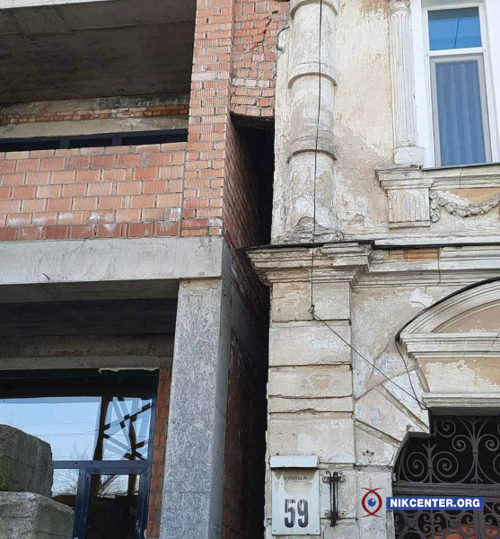 Отметим, что согласно разрешению на строительство, выданному управлением Государственного архитектурно-строительного контроля (ГАСК — Ред.) Николаевского горсовета, условием осуществления строительства было невмешательство в здания объектов культурного наследия, расположенных рядом, и их архитектурные элементы фасадных частей.