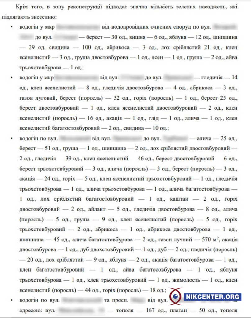 В документе предусмотрен снос около 4250 кустов и деревьев. Также ремонтные работы окажут влияние и на 17 тысяч квадратных метров газона.