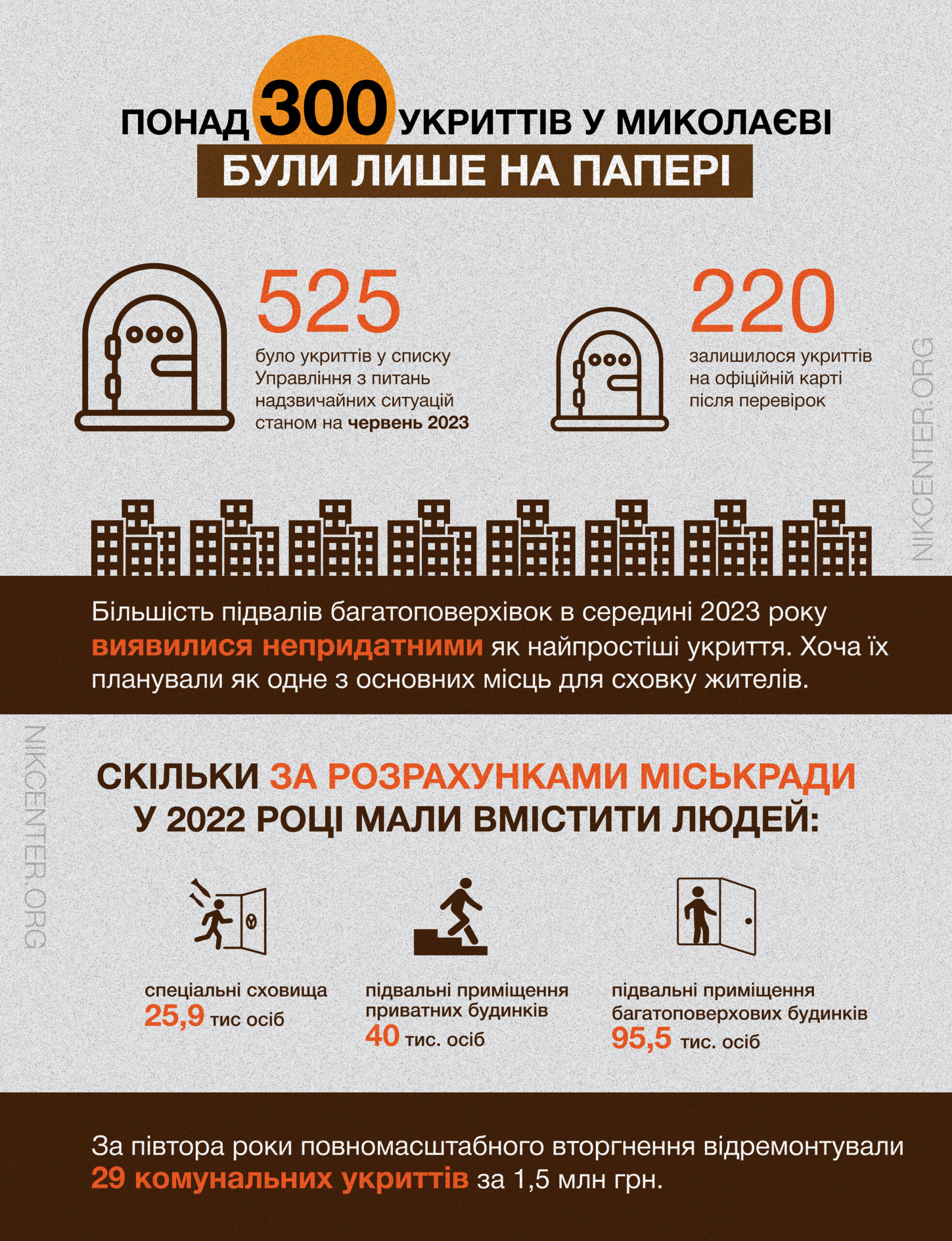 По плану местных властей, именно в обычных подвалах многоэтажек должно было укрываться от обстрелов большинство николаевцев. Вместе они вмещают около 95,5 тыс. человек.