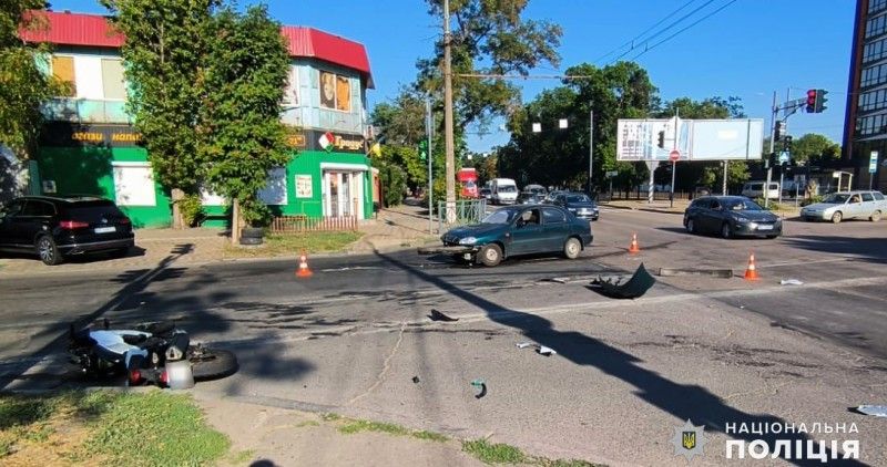 «В результате столкновения транспортных средств несовершеннолетний водитель мотоцикла с телесными повреждениями был госпитализирован. По данному факту начато уголовное производство, предварительно, по признакам ч. 1 ст. 286 УКУ «Нарушение правил безопасности дорожного движения или эксплуатации транспорта лицами, управляющими транспортными средствами».