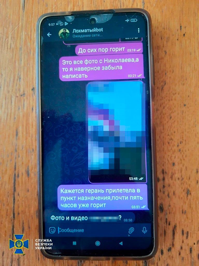 «Разведданные фигурантка переправляла пророссийскому блогеру Сергею Лебедеву (более известному под псевдонимом «Лохматый»), который находится во временно оккупированном Донецке и работает на ФСБ. В дальнейшем вражеский пропагандист переправлял полученные сведения в российскую спецслужбу для подготовки новых и корректировки повторных воздушных атак на Николаевщину».