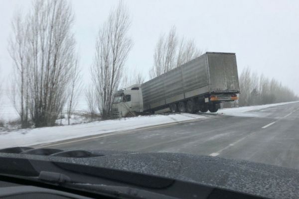 Херсонские спасатели вытащили грузовик и микроавтобус, застрявшие в снегу на трассе Голая Пристань – Железный порт 2018-01-24