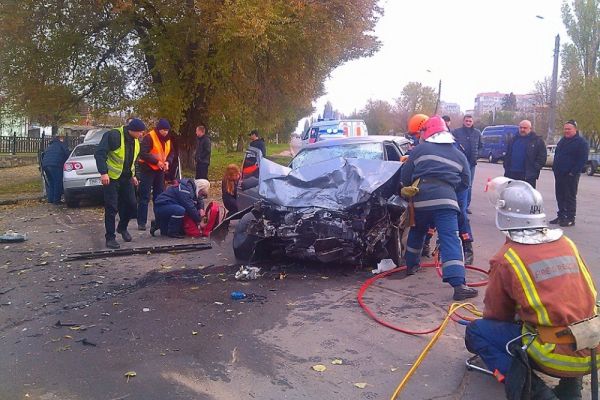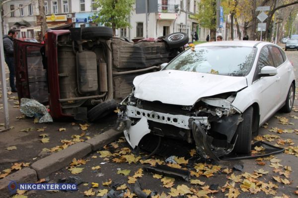 В центре Николаева столкнулись две машины: от удара «Таврия» вылетела на тротуар и перевернулась на бок 2016-11-02