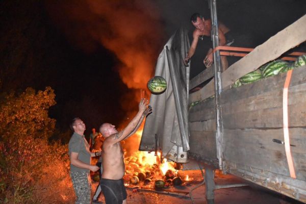 Губернатор Херсонщины тушил горящую фуру арбузами (ФОТО)