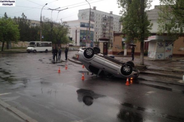 В Николаеве водитель перевернулся на автомобиле, не справившись с управлением