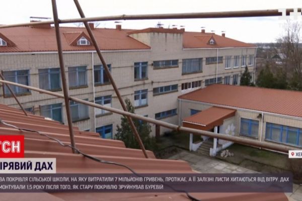 Недавно капитально отремонтированная за 7 млн. грн. кровля сельской школы на Херсонщине уже протекает. ВИДЕО 2021-02-16