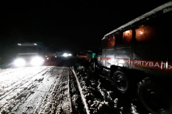 После ночного снегопада на трассах в Николаевской области образовались заторы из грузовых автомобилей 2021-01-28