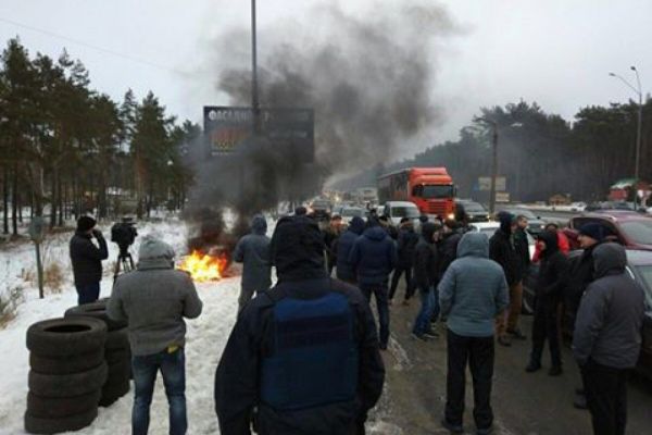 В Киеве активисты перекрыли Одесскую и Бориспольскую трассы и готовятся поджечь шины