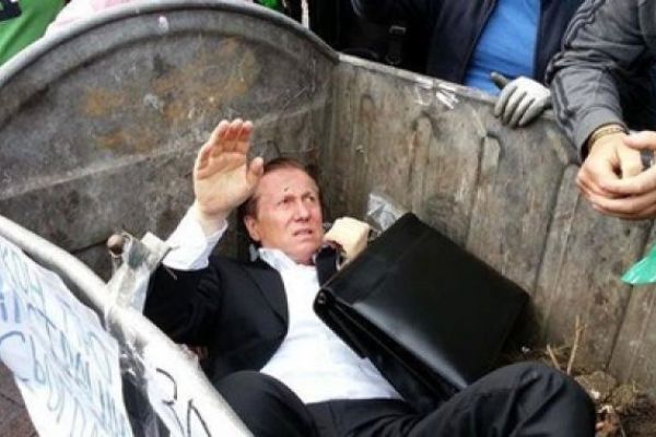 Под зданием Рады депутата Виталия Журавского поймали и запихнули в мусорный бак активисты Правого сектора 2014-09-16