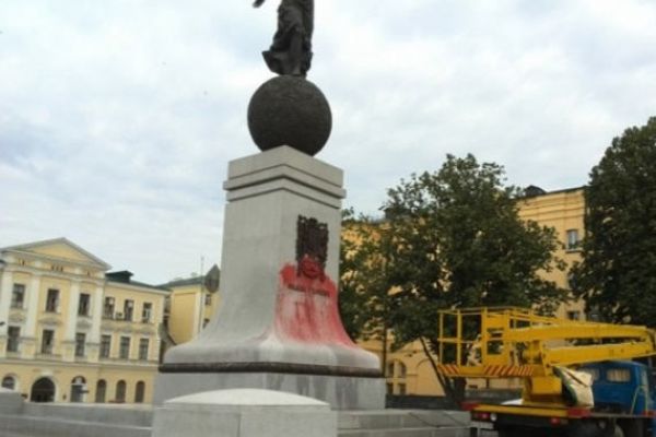 Ночью в Харькове неизвестные облили краской памятник Независимости Украины на площади Конституции 2014-07-14