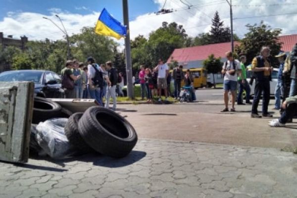 Вчера пикетировали Российское посольство в Киеве: бросали взрывпакеты, били окна, кидали яйца 2014-06-14