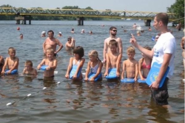 Херсонских детей на местном пляже учат плавать