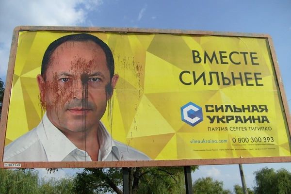 В Варваровке запятнали краской Тигипко на биллборде партии «Сильная Украина»
