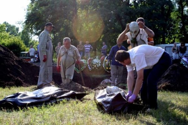 В Славянске украинские власти эксгумировали массовое захоронение мирных жителей убитых «ополченцами» 2014-07-25