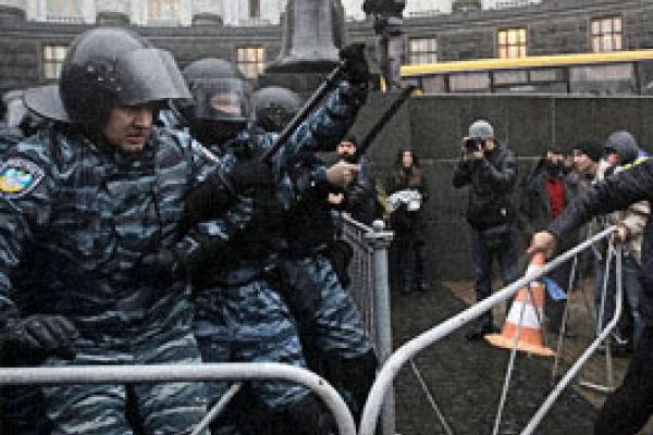 Под Кабмином произошло столкновение милиции и протестующих. Милиция применила слезоточивый газ 2013-11-25