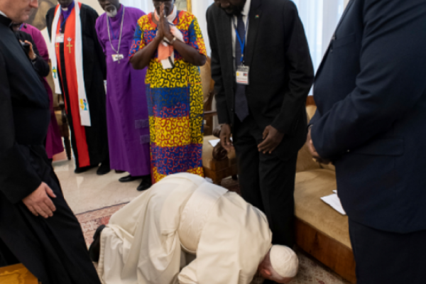 Папа Франциск стал на колени перед лидерами Южного Судана