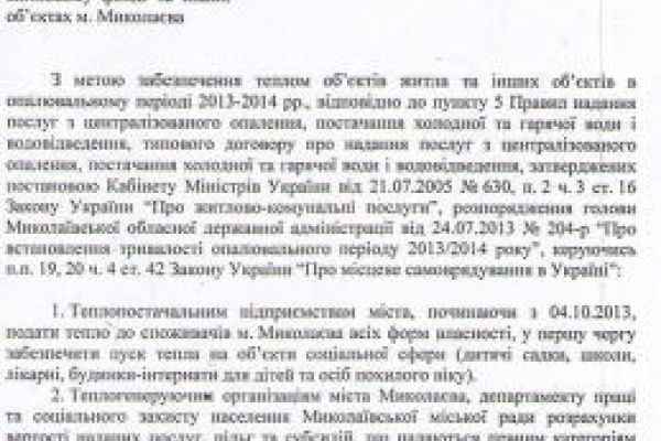 Будет тепло: временный николаевский градоначальник подписал распоряжение о подаче тепла в дома 2013-10-03