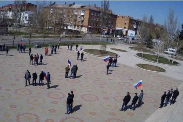 В Новой Каховке оккупанты провели «митинг» с триколорами, участвовали примерно 50 «ряженых» 2022-04-10