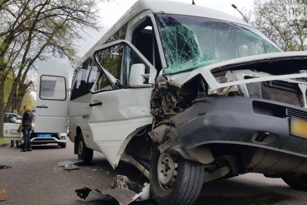 В Николаеве на проспекте Богоявленском маршрутка влетела в стоявший грузовик — есть пострадавшие 2019-05-02