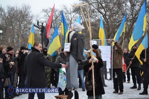 В Херсоне на митинге по случаю годовщины принятия «диктаторских законов» стояла виселица, на которой висел «депутат-предатель» 2015-01-16