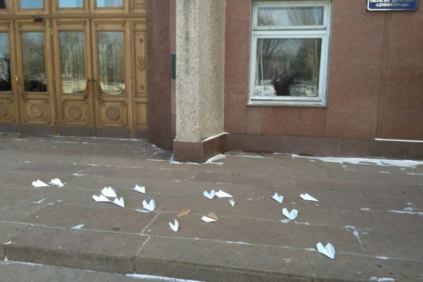 Николаевцы запустили хэштэг #ВідставкаСавченка и разбросали у входа в Николаевскую ОГА бумажные самолетики 2018-03-19