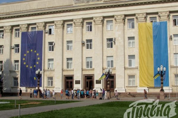 Перед Херсонской ОГА провели акцию протеста жители села, где произошла бурная разборка между фермерами 2017-08-28