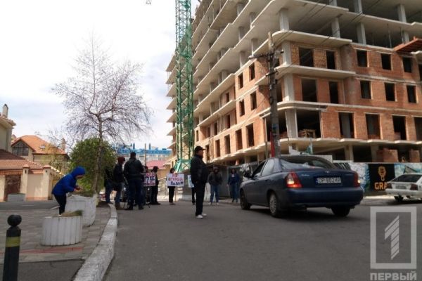 Работники стивидорной компании пикетируют Николаевский филиал Администрации морпортов Украины 2017-04-25