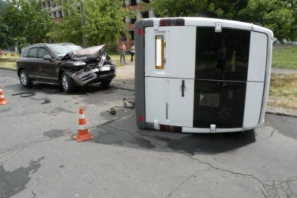 В Николаеве маршрутка протаранила автомобиль и перевернулась