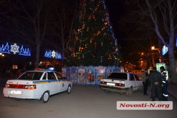 В Николаеве пьяный 17-летний подросток на «Мазде» столкнулся с маршруткой и заехал прямо под городскую елку на Советской 2014-12-22