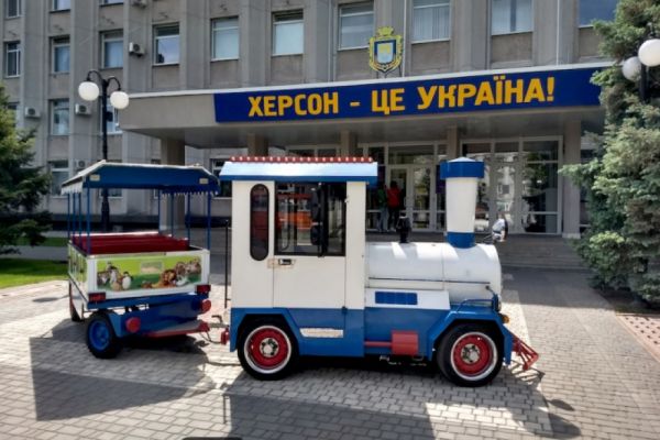 Херсонский предприниматель в знак протеста против лишения его возможности работать вывел к зданию горсовета детский паровозик 2019-05-08