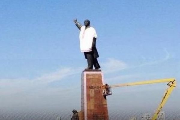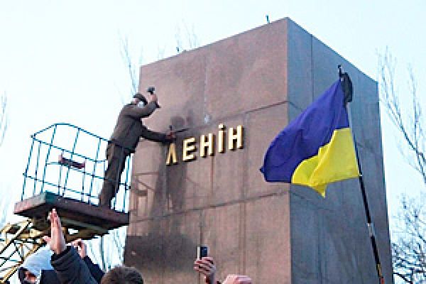 Николаевские «ленинцы» пришли с иконами восстанавливать статую главного гонителя Церкви 20 века 2014-03-19