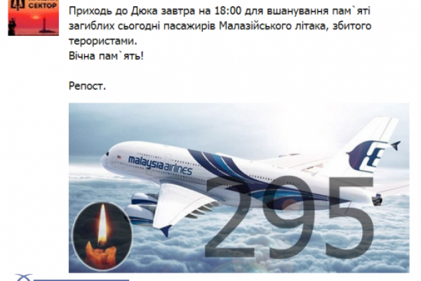 Одесситы почтят память погибших в авиакатастрофе малазийского самолета
