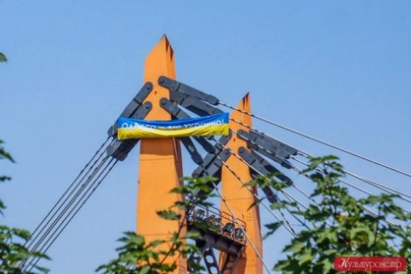 На самой высокой точке Одесского морского порта вывесили большой флаг Украины