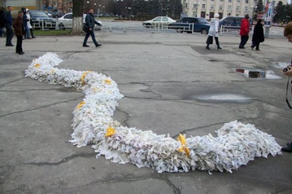 Херсонские школьники сплели для военных в зоне АТО огромную маскировочную сеть