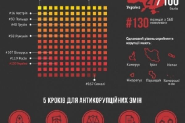 В рейтинге восприятия коррупции Украина поднялась на один пункт