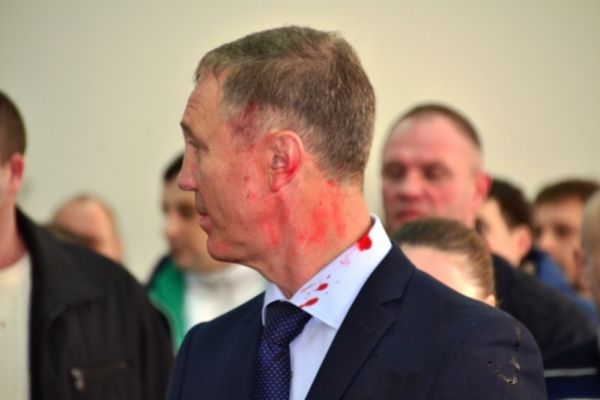 Экс-мэра Херсона Владимира Сальдо на первой же сессии горсовета с его участием облили краской. ФОТО 2016-02-12