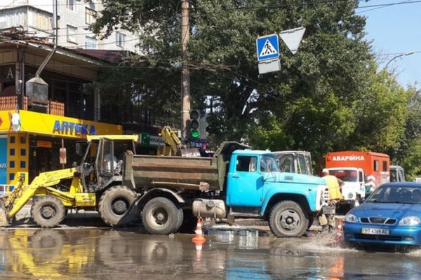В Херсоне прорвало трубопровод на углу Комкова и Сретенской