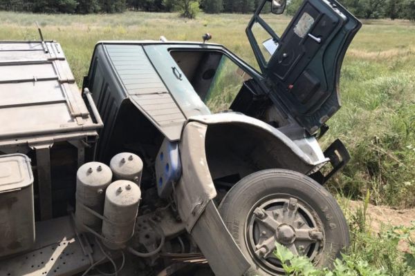В Херсонской области еще один зерновоз слетел с трассы и перевернулся