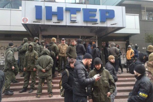 «Азовцы» заблокировали все входы в здание телеканала «Интер»