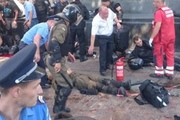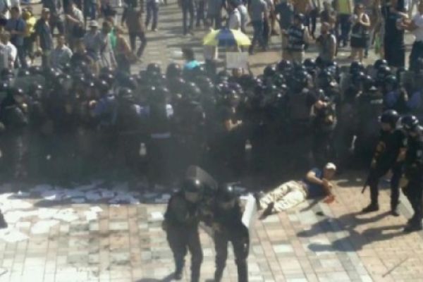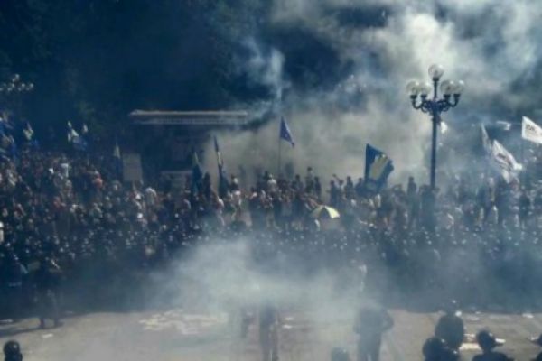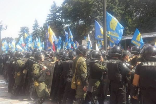 Конфликт между митингующими и правоохранителями переместилися под парламентскую гостинницу «Киев» 2015-08-31