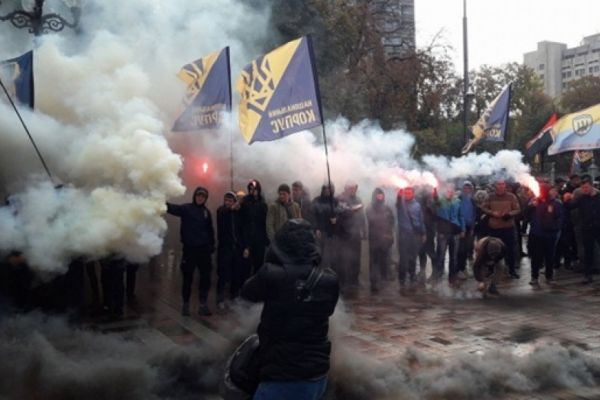 Пока ВР рассматривает законопроекты по Донбассу, активисты под ее стенами жгут шины и дымовые шашки 2017-10-05