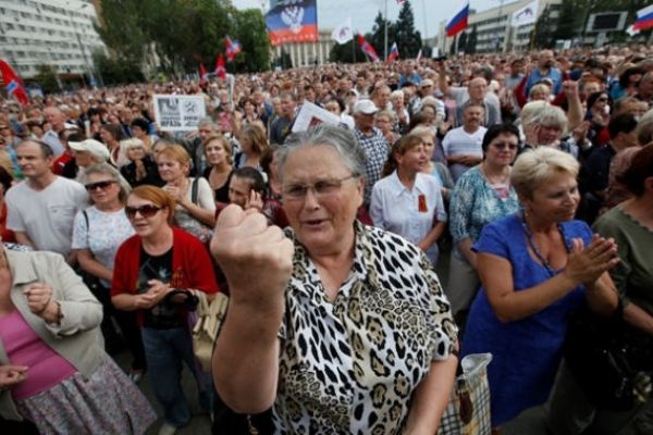 «Угадайте, кто будет вести хоровод вокруг главной елки «ДНР»? — Конечно же Губарев!»: в центре Донецка появилась новогодняя елка 2014-12-14