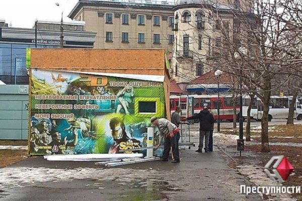 Владельцы кинотеатра, самовольно установленного на главной улице Николаева, добровольно разбирают сооружение 2017-02-04