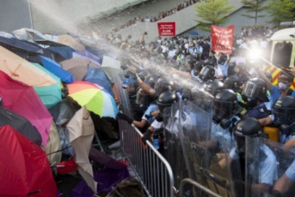 Массовые протесты в Гонконге все больше напоминают киевский Майдан: ночуют в палатках, возводят баррикады 2014-10-02