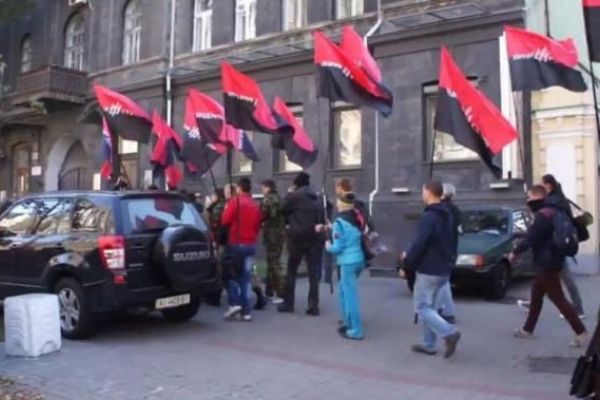 Правый сектор митингует в знак протеста против отказа Центризбиркома регистрировать кандидатов с непогашенной судимостью 2014-10-02