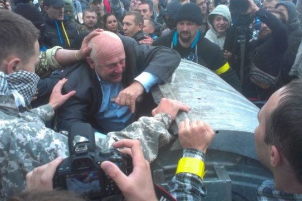 Заместителя председателя Ровенского облсовета активисты выбросили в мусорный бак под крики «Ганьба!» 2014-09-26