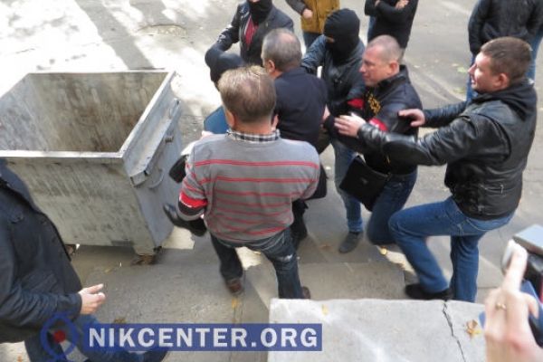 Волна «народной люстрации» докатилась до Николаева — в мусорный бак запихнули чиновника ОГА (обновлено) 2014-10-06