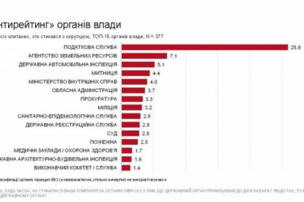 Украинские бизнесмены считают налоговую, земагентство и ГАИ самыми коррумпированными госструктурами 2015-04-15